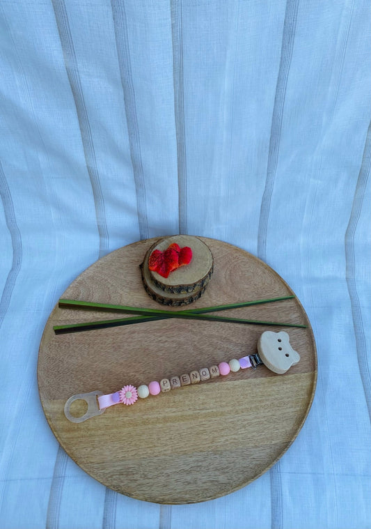 Attache tétine fantaisie rose et beige