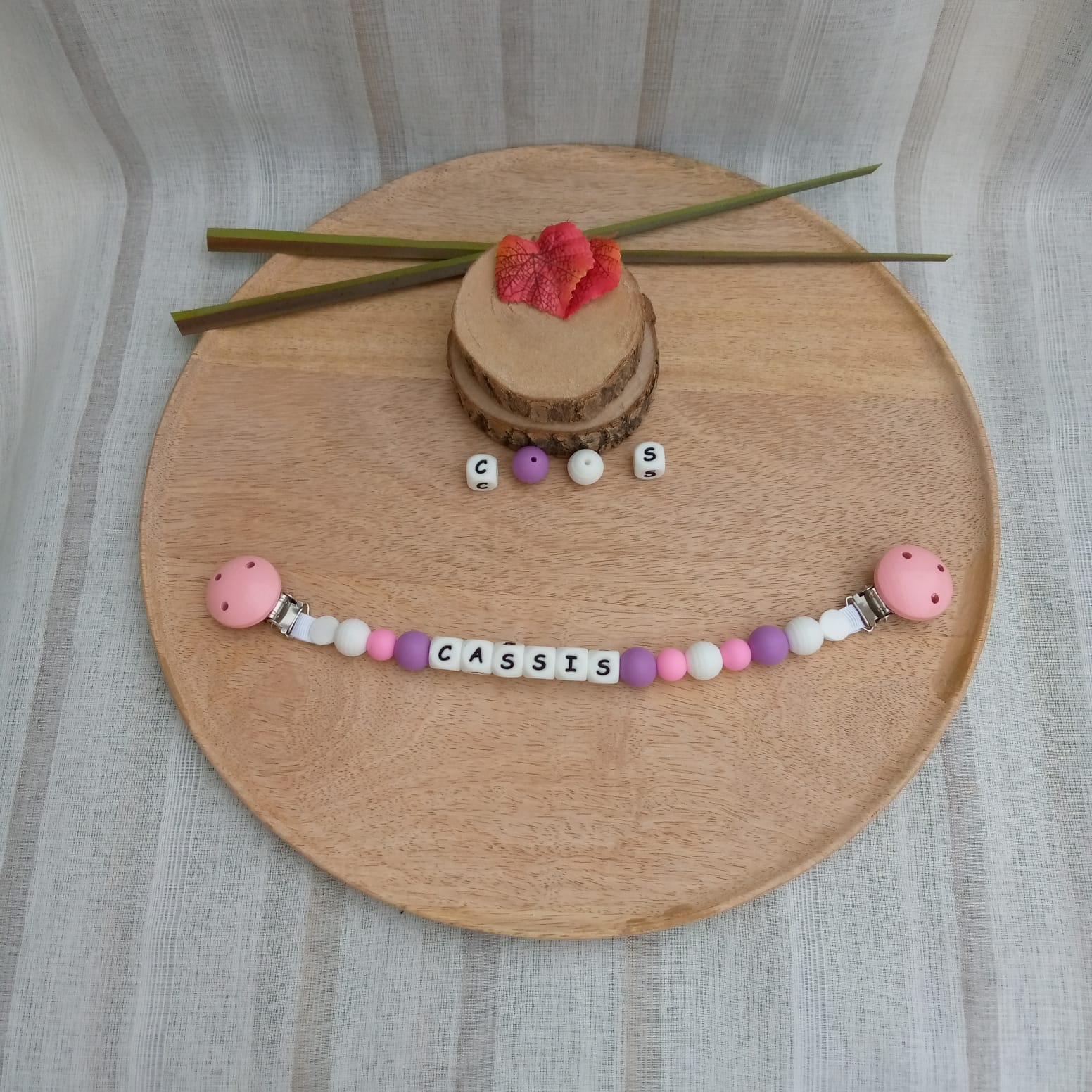 Attache doudou personnalisable : clip simple, lettres en silicone et mélange de perles en silicone, plus de perte de doudou de vos bébés.