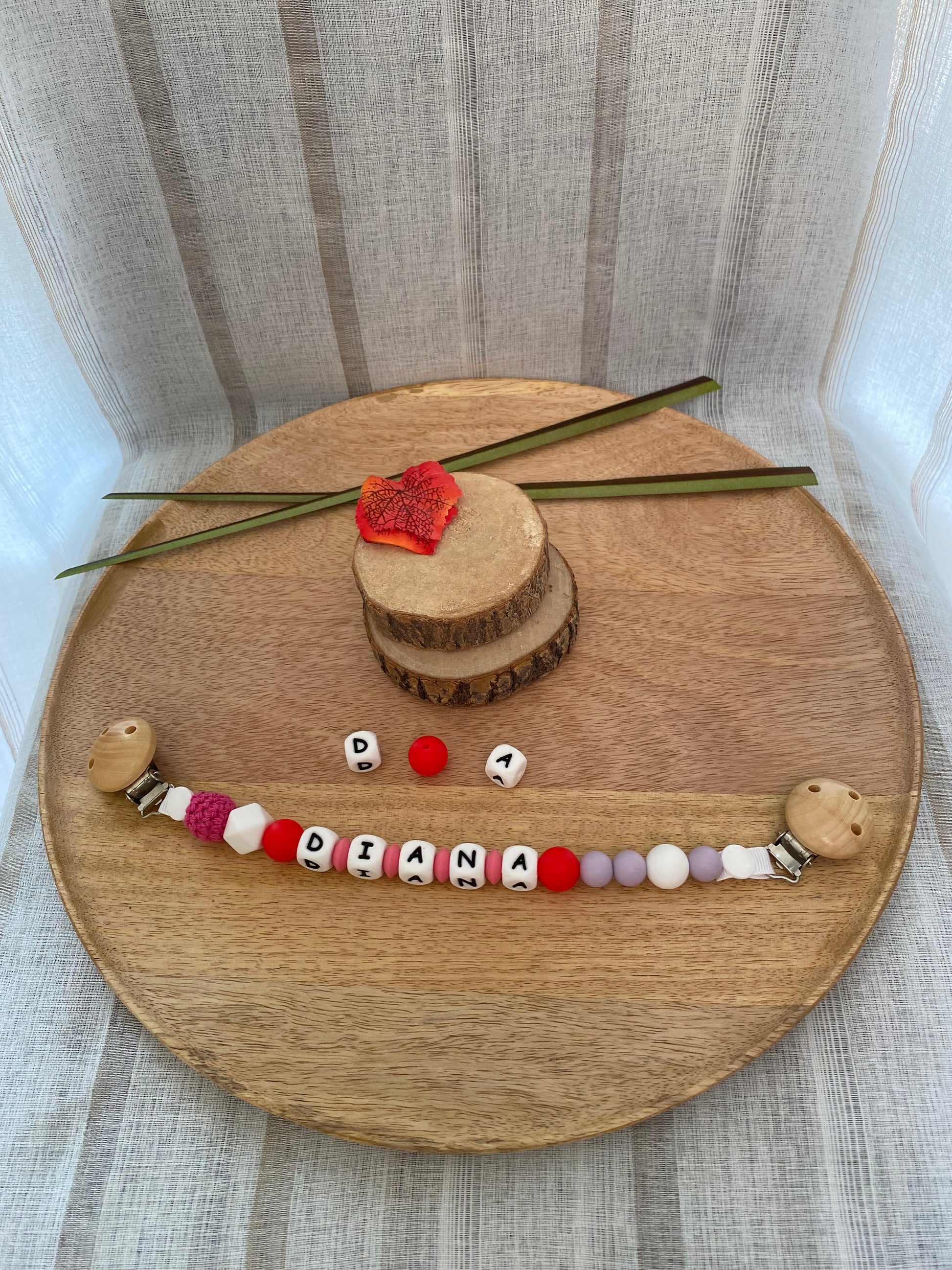 Attache doudou personnalisable : lettres en silicone, mélange de perles en silicone et en crochet, plus de perte de doudou de vos bébés.