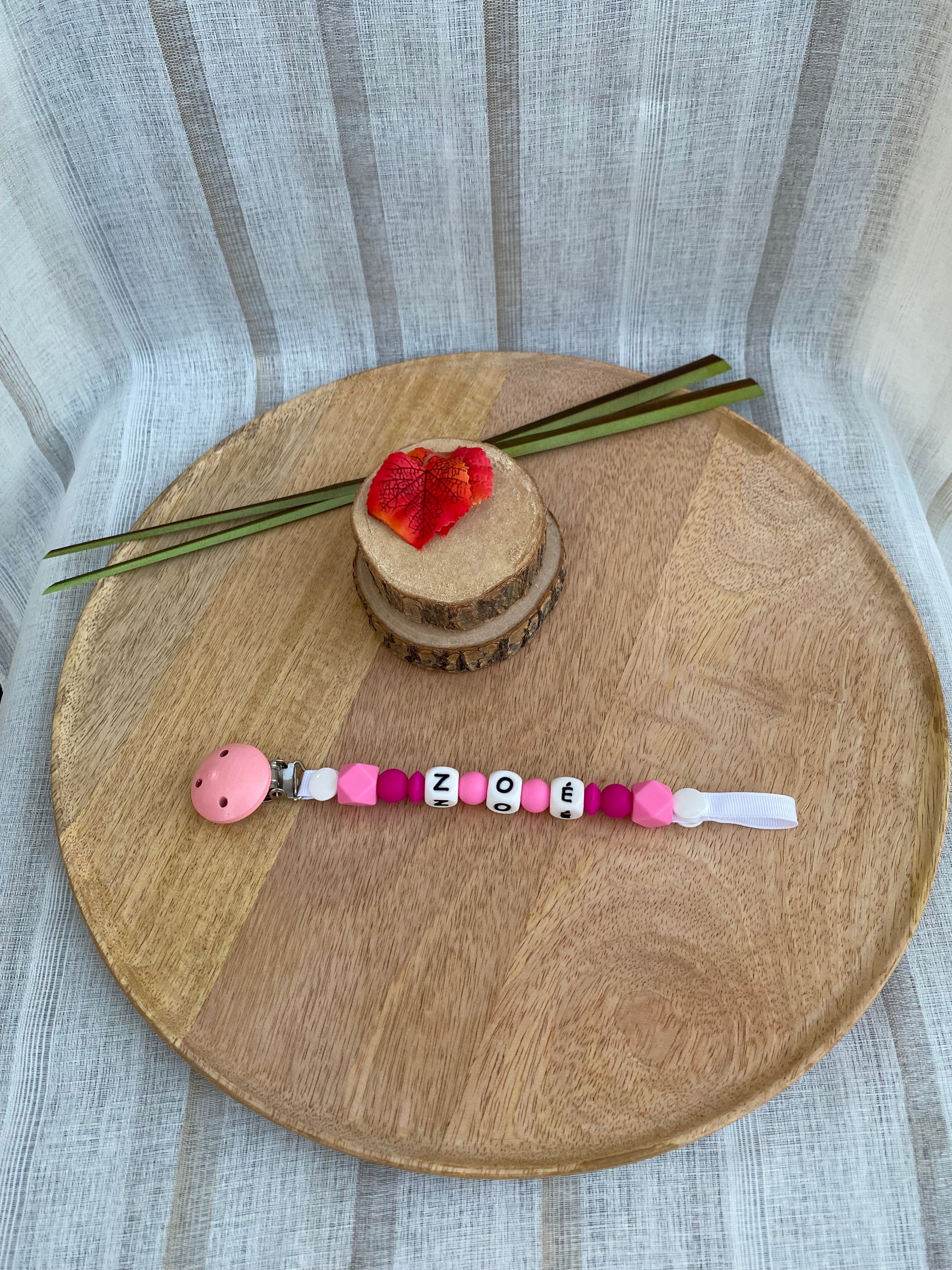 Attache-sucette personnalisable : clip Simple, lettre en silicone, mélange de perles en silicone.