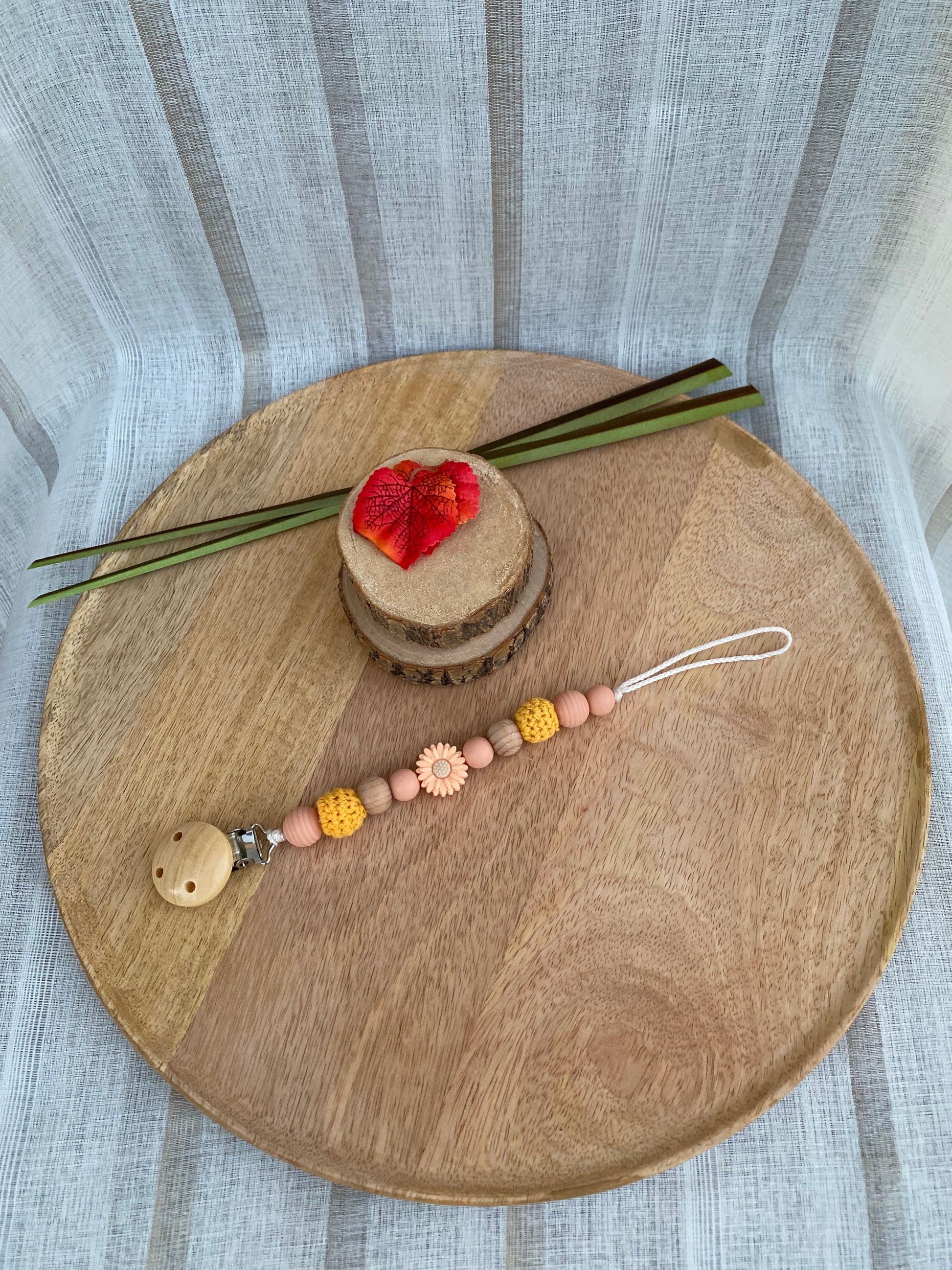 Attache-sucette personnalisable : clip simple , mélange de perles en silicone, en bois et en crochet.