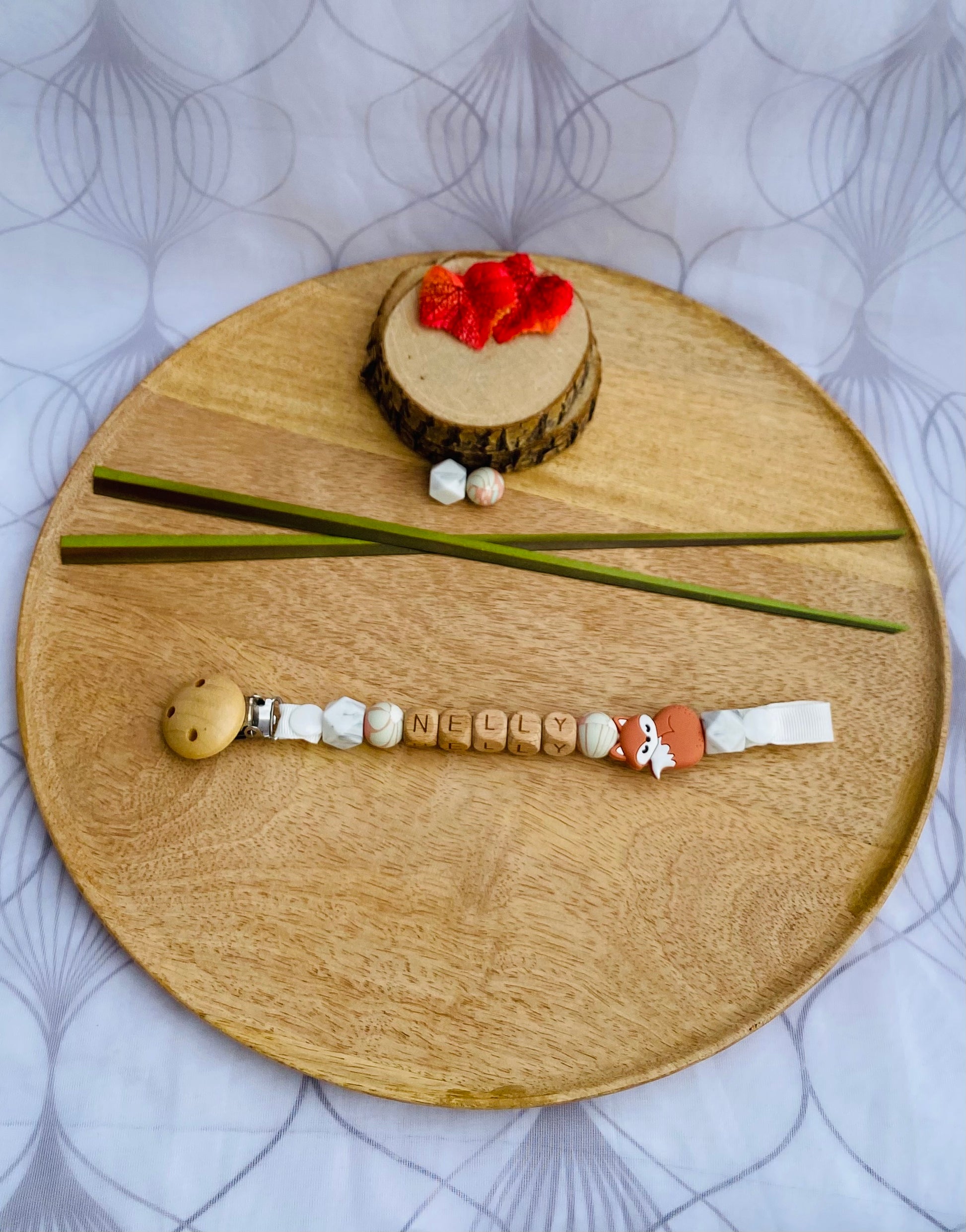 Attache-sucette personnalisable : clip Simple, lettres en bois et mélange de perles en silicone.