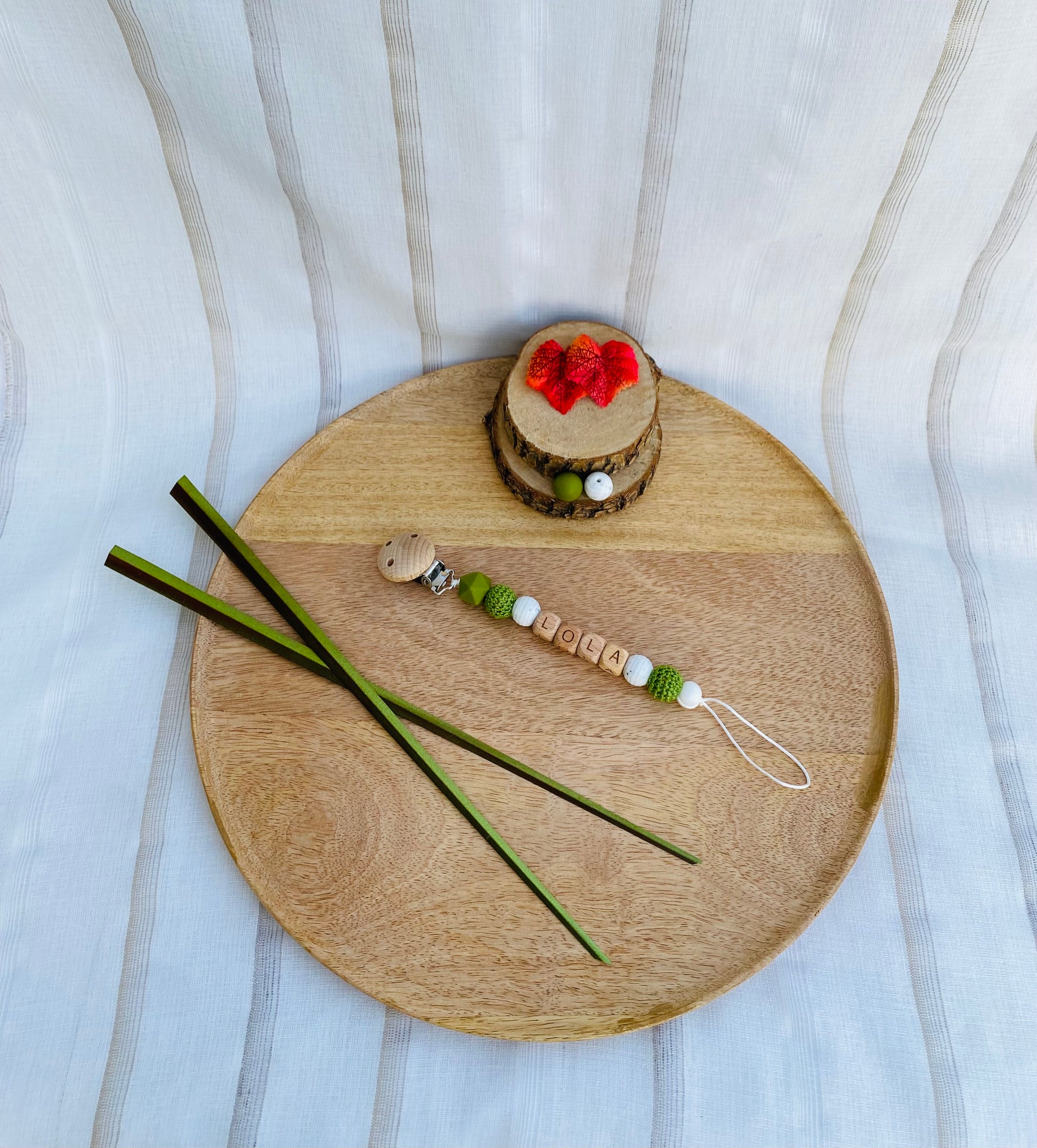 Attache-sucette personnalisable : clip Simple, lettres en bois et mélange de perles en silicone.