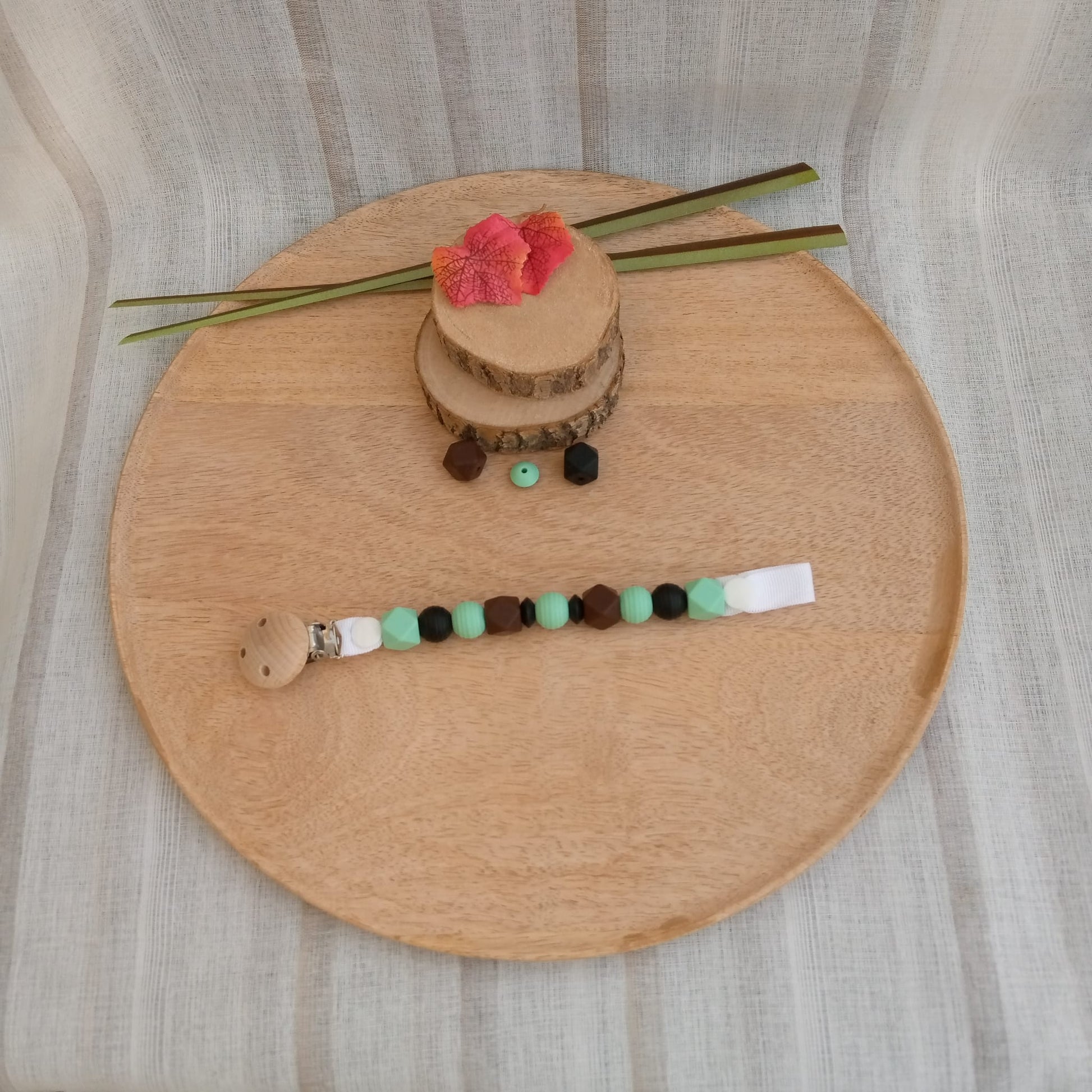 Attache-sucette personnalisable : clip simple et mélange de perles en silicone.
