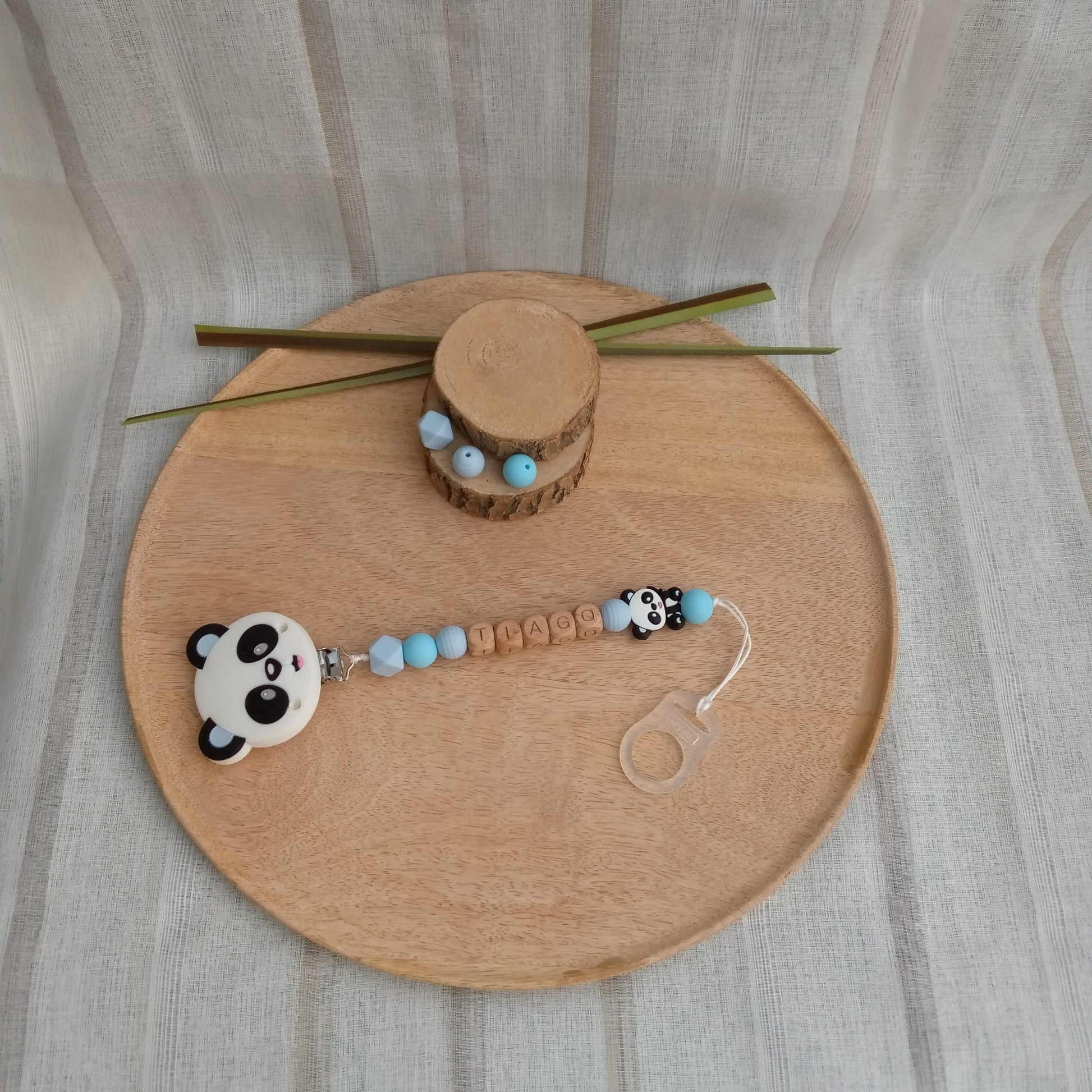 Attache-sucette personnalisable : clip Fantaisie, lettres en bois et mélange de perles en silicone.