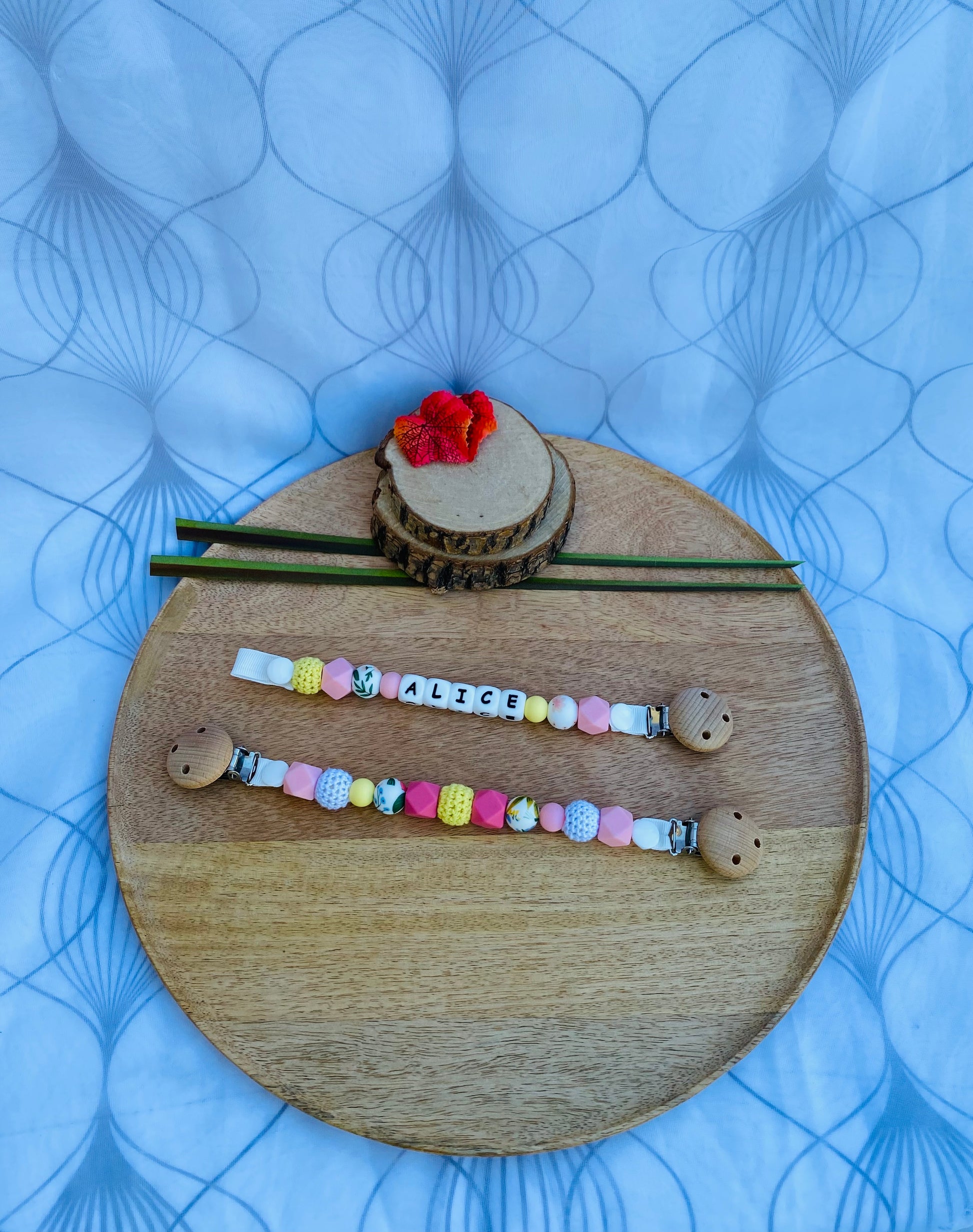 Coffret duo composé d'un attache-sucette et d'un attache doudou.