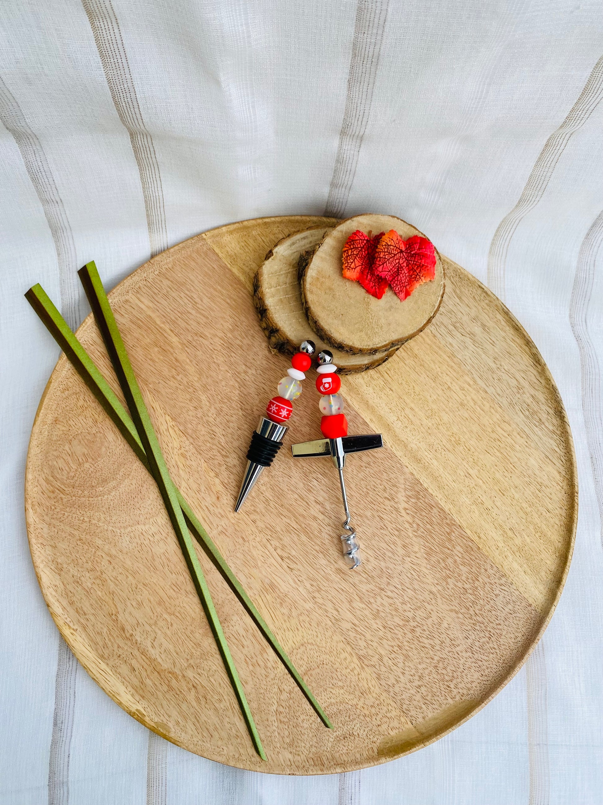 Duo composé d'un bouchon à vin et d'un tire-bouchon.