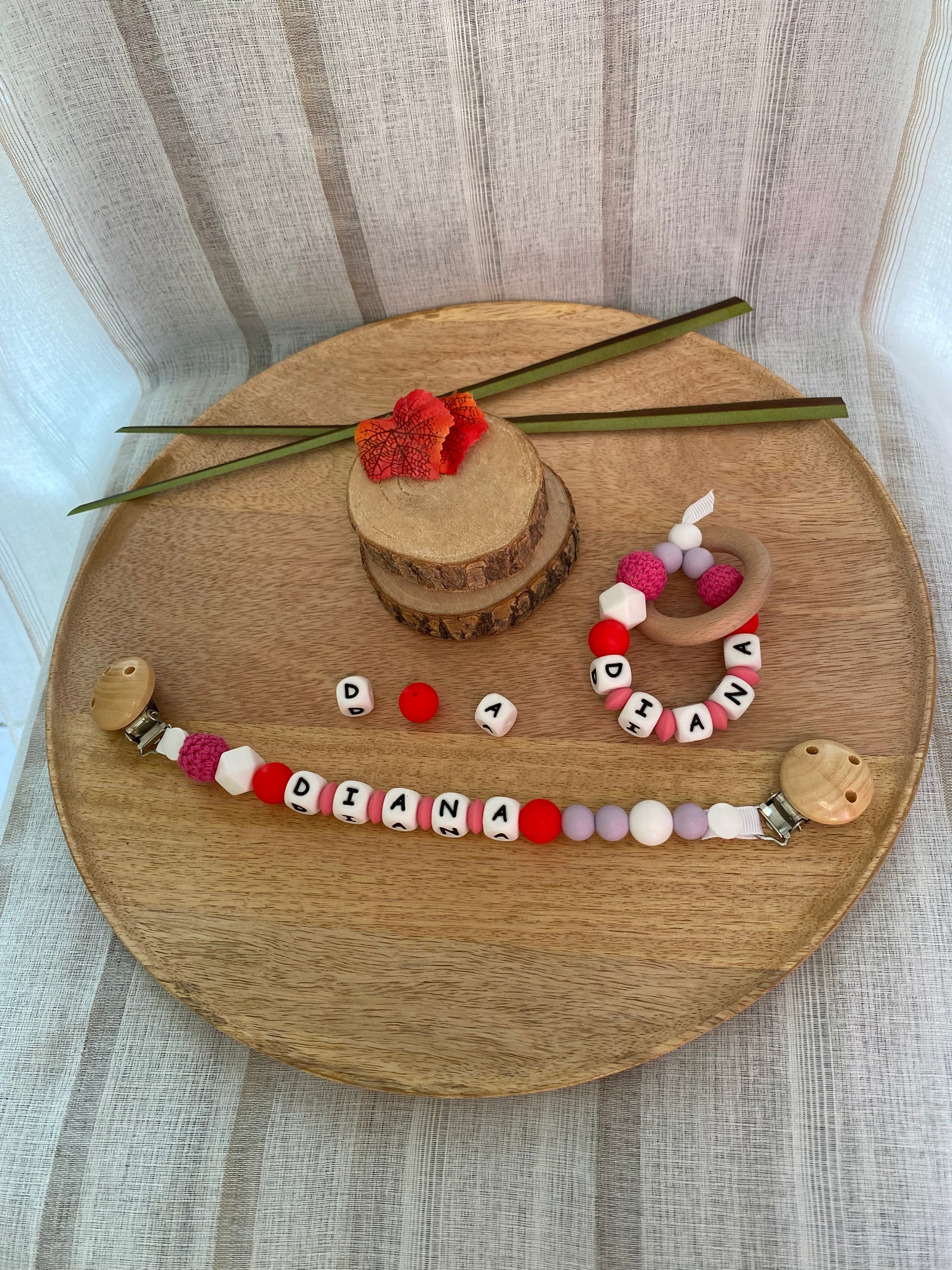 Attache doudou personnalisable : lettres en silicone, mélange de perles en silicone et en crochet, plus de perte de doudou de vos bébés.