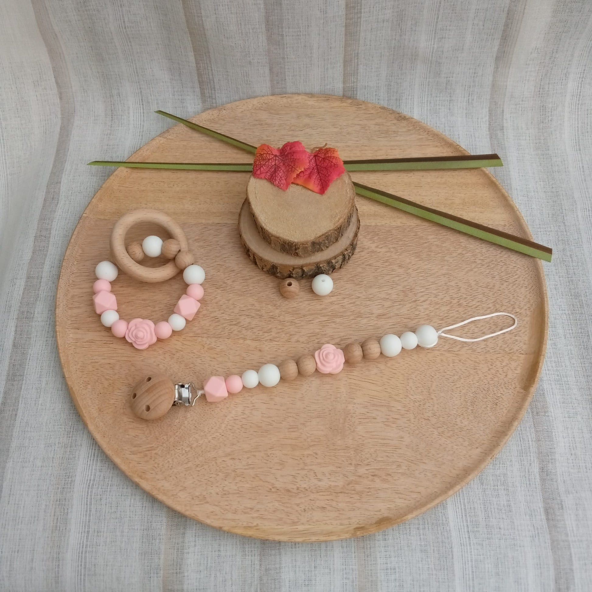 L'attache-sucette personnalisable : clip simple , mélange de perles en silicone et en bois.