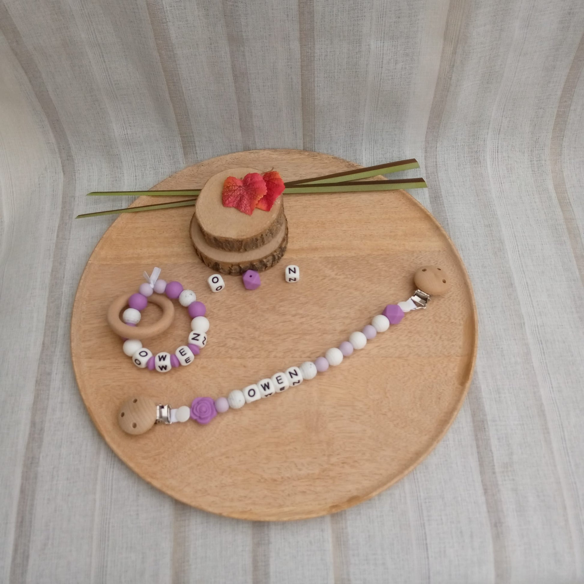 Coffret duo composé d'un anneau de dentition et d'un attache doudou Fantaisie.